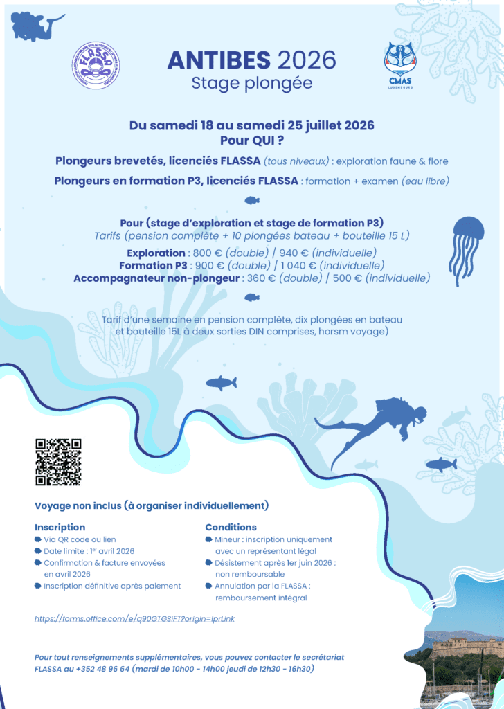 Envie d’une semaine 100% mer, bulles et convivialité ? La FLASSA vous propose un stage plongée à Antibes : une formule idéale pour explorer la faune et la flore… ou valider votre P3 en eau libre dans un cadre méditerranéen.
